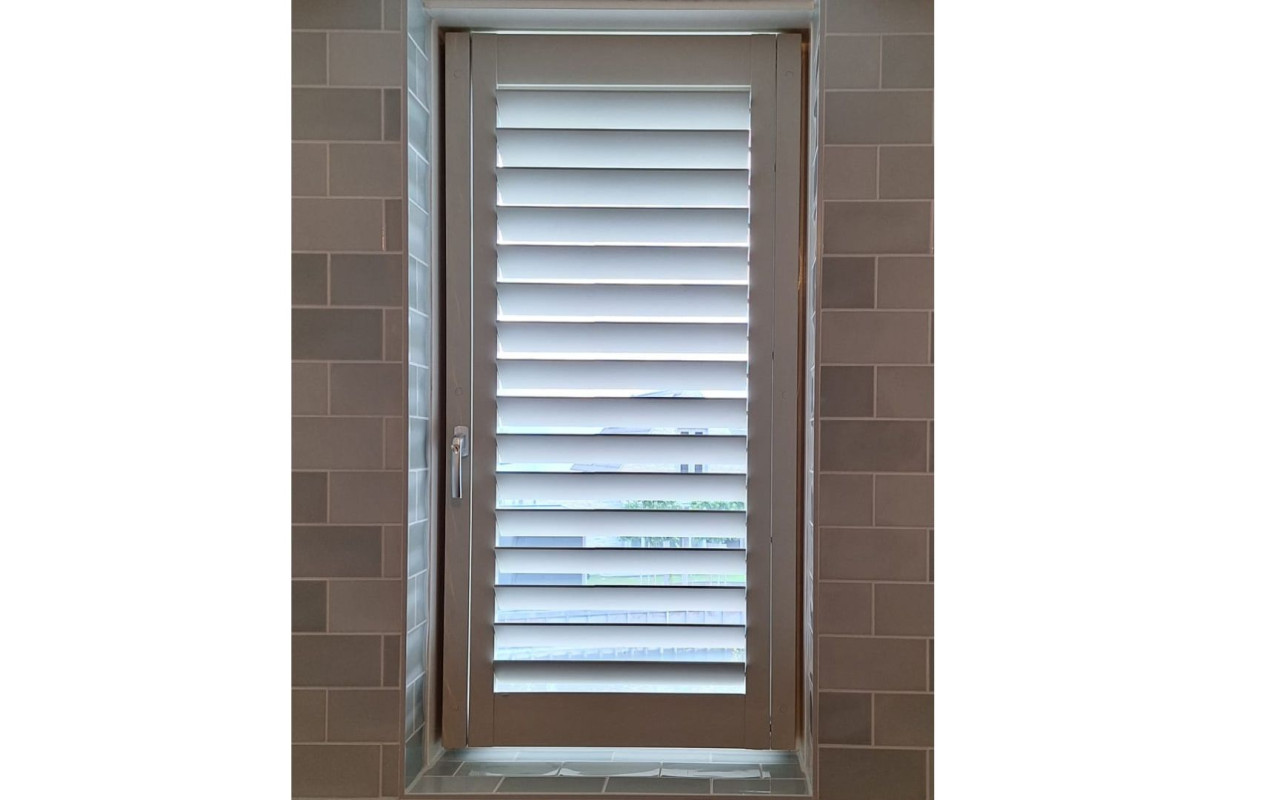 Aqualine shutters | Silent View | Lamelmaat L (89 mm) | Kleur 0452 Cream Grey | Op draaikiepraam